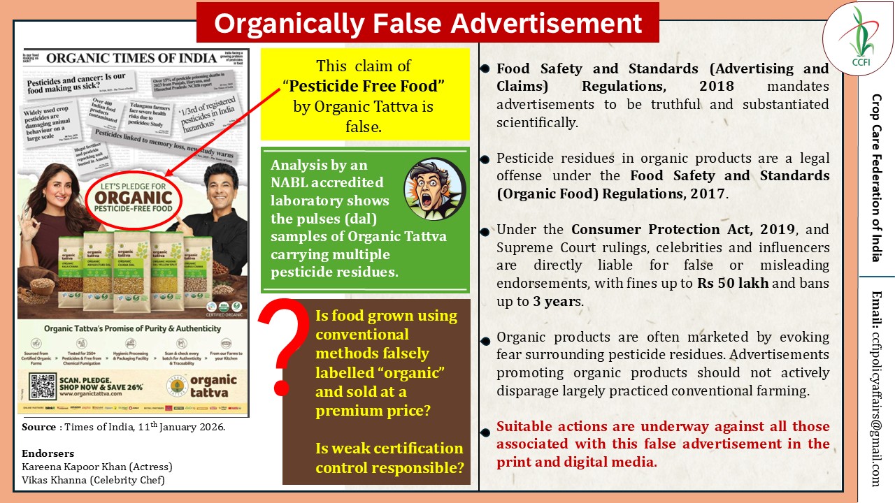 Organically False Advertisement by CENTEGRO | Mar 8, 2026 Any express or implied claim that organic farming does not use pesticides and adopts “pesticide free farming” is wrong and mislead. Here is an example 👇🏻 Submit a Comment Cancel replyYour email address will not be published. Required fields are marked *Comment * Name * Email * Website Save my name, email, and website in this browser for the next time I comment. Δ
